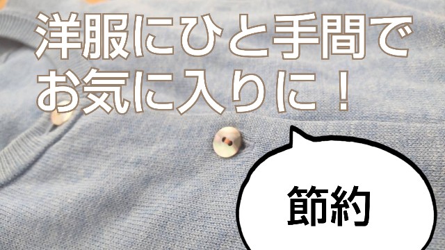 - ひと手間は、ついているボタンを自分の好みのボタンに替えるだけ
